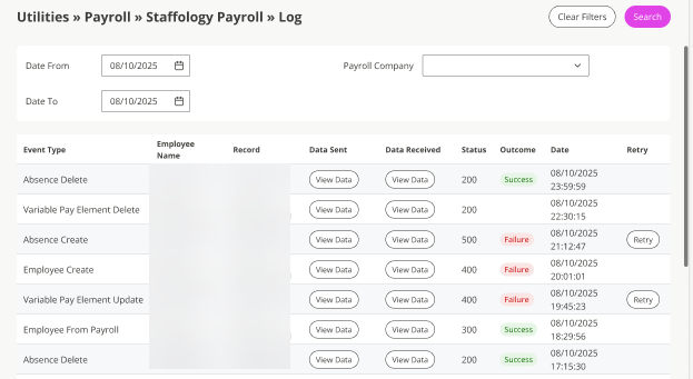 In System Tools > Utilities > Payroll> Staffology Payroll > Actions > Integration Log, we have updated the table labels to make them clearer.