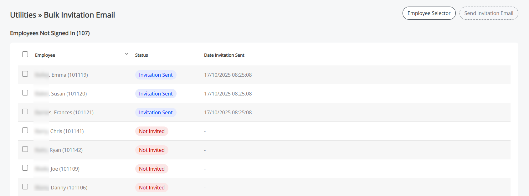 Send invitation emails in bulk to employees who have not signed in